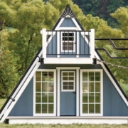 But first, let’s talk about the a-frame playhouse! Our love for this playhouse is born from its one-of-a-kind design, reminiscent of the iconic A-frame homes of the mid-20th century. Its signature triangular shape makes it stand out, lending a modern look to your playset.
