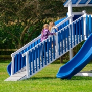 This upgrade enhances our ramp and 5′ staircase with durable, low-maintenance poly railings. Designed with younger children and those who need a little extra stability in mind, these sturdy railings make it easy for everyone to confidently climb into the swing set tower or playhouse.
