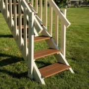 For ramps, this upgrade replaces the standard rope railing, offering a more secure and refined option. (Ramps are available only at a 5′ deck height.)