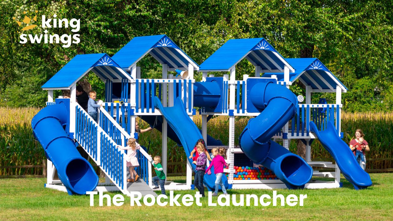 Five slides, yes, five, adorn the Rocket Launcher playset, making this one of the most exciting backyard playsets we offer! The ball pit blast dives into the ball pit, which, even as an adult, is a thrilling experience!