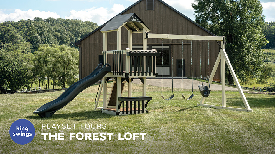 Easy to customize and full of charm, the Forest Loft backyard swing set brings creativity, comfort, and lasting fun to your backyard, crafted with the quality and care you expect from King Swings.