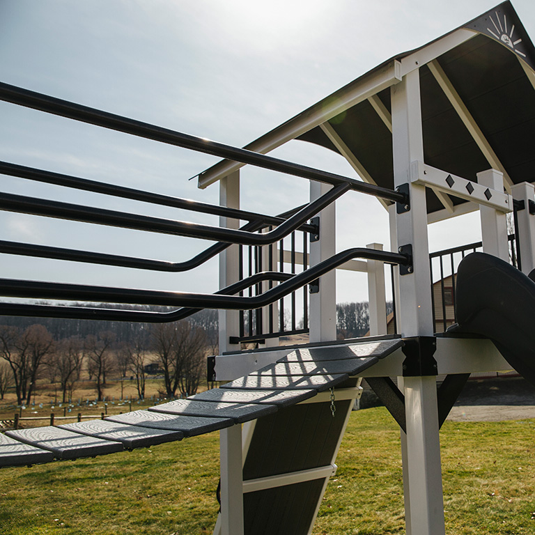 The wobbly bridge is an excellent addition to any vinyl swing set!
